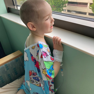 And lastly, after a full joyous day, his most important gift of all came: chemotherapy. Again, we sort of expected the worst, that he would be nauseous and uncomfortable at the end of his special day. But God, in His sweet goodness spared Liam from this as well today. In fact, his only side effect was that he was starving afterward!