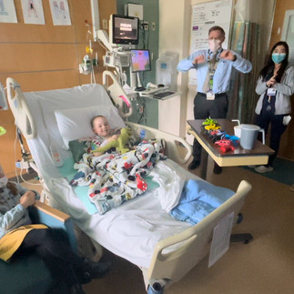 But God is so so good. Today, Liam woke up feeling better than he had all week. The antibiotics had worked. The fevers were gone. He was hungry. He wanted to play. He was happy for really the first time since getting sick. Gifts upon gifts began pouring into his room as the nurses adorned his walls with birthday decorations. He had a few special visitors to brighten his day.