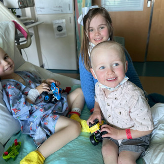 Liam’s siblings, Lily and Jack, were able to visit now that they’ve recovered from their cold. It is so helpful for Liam to be with them. It helps him feel more normal and pulls him out of the hospital funk. Lily and Jack also think that the hospital is amazing. There are so many toys and activities and nurses and doctors! At one point, Lily wanted to play doctor and make Liam her patient. He politely refused.